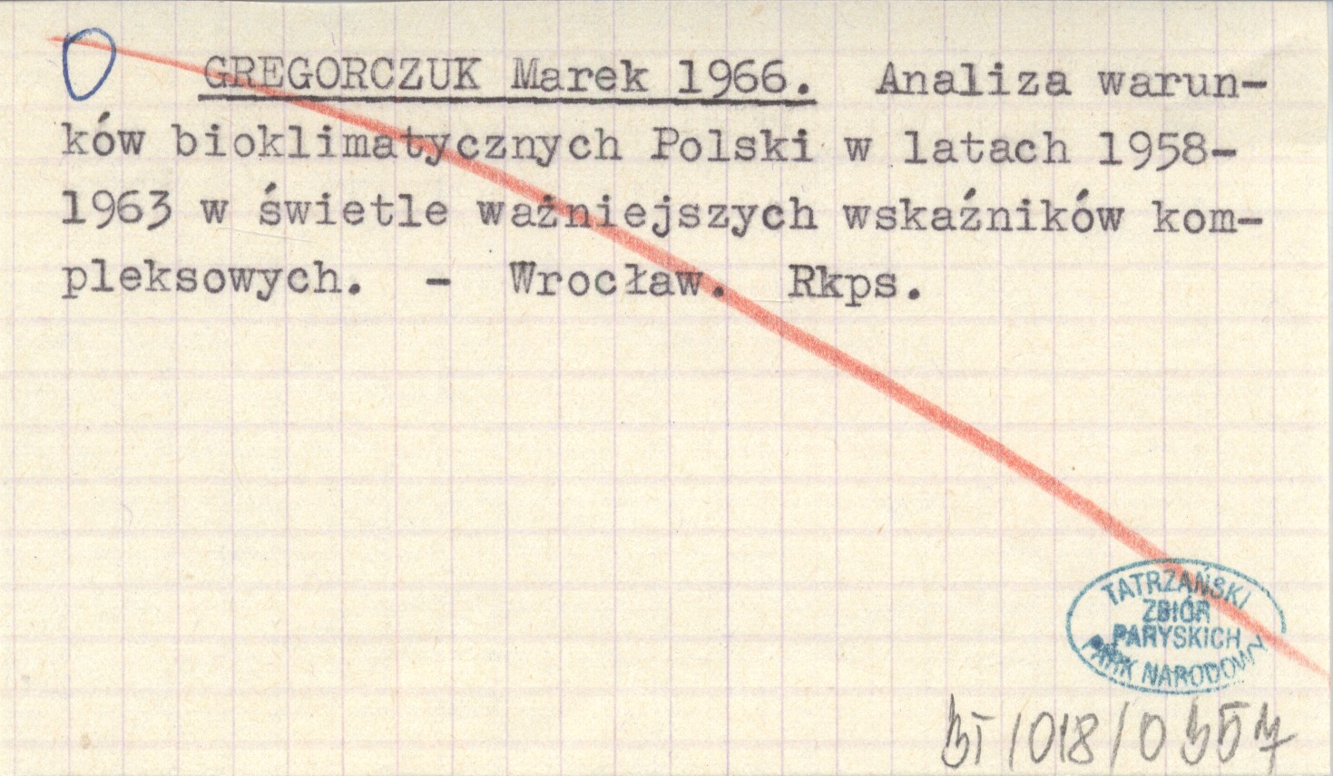 GREGORCZUK Marek 1966 Analiza warunków bioklimatycznych Polski w latach 1958-1963 w świetle ważniejszych wskaźników kompleksowych.