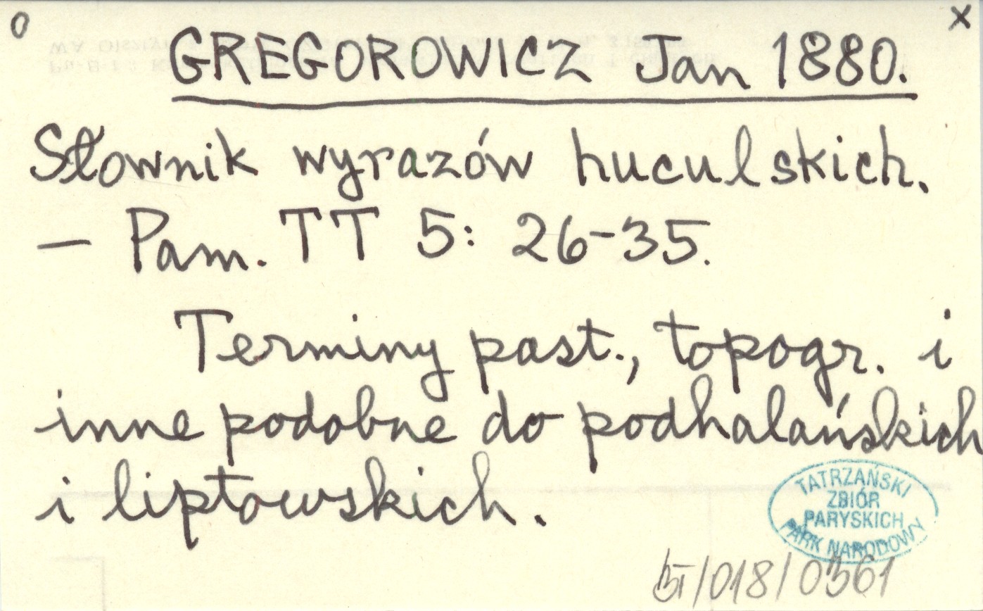 Pamiętnik Towarzystwa Tatrzańskiego, 5: 26-35. Terminy past., topogr. i inne podobne do podhalańskich i liptowskich.