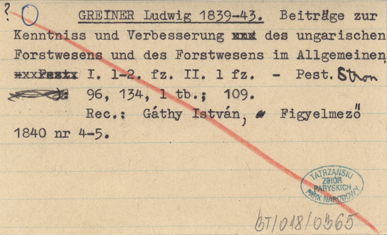 GREINER Ludwig 1839-43 Beiträge zur Kenntniss und Verbesserung des ungarischen Forstwesens und des Forstwesens im Allgemeinen I. 1-2. fz. II. 1 fz.