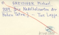 GREISIGER Michael 1889 [Die Nadelholzarten der Hohen Tatra.]