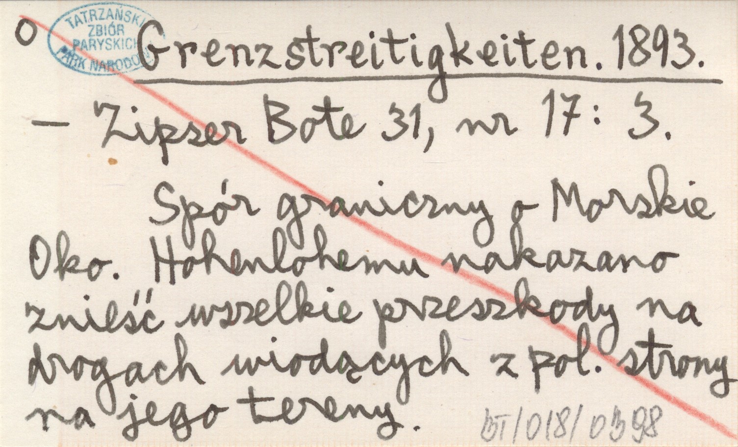 Zipser Bote, 31, nr 17: 3. Spór graniczny o Morskie Oko. Hohenlohemu nakazano znieść wszelkie przeszkody na drogach wiodących z pol. strony na jego tereny.