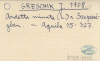 GRESCHIK J. 1908 Ardetta minuta (L.) a Szepességben.