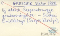 GRESCHIK Viktor 1888 Uj adatok Szepesvármegye gombavirányahoz.