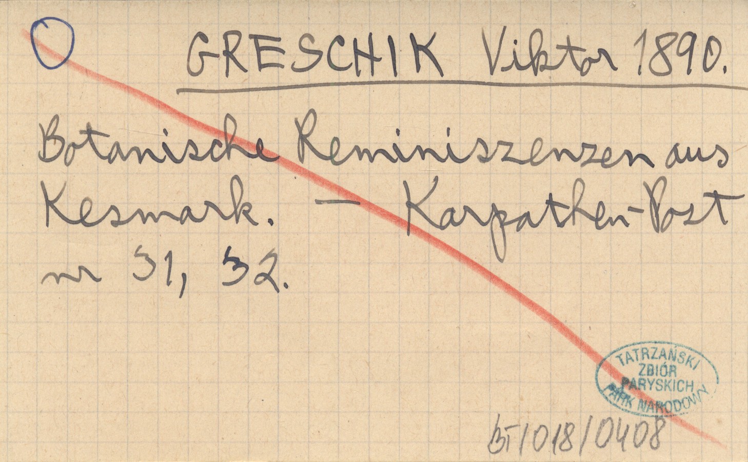 GRESCHIK Viktor 1890 Botanische Reminiszenzen aus Kesmark.