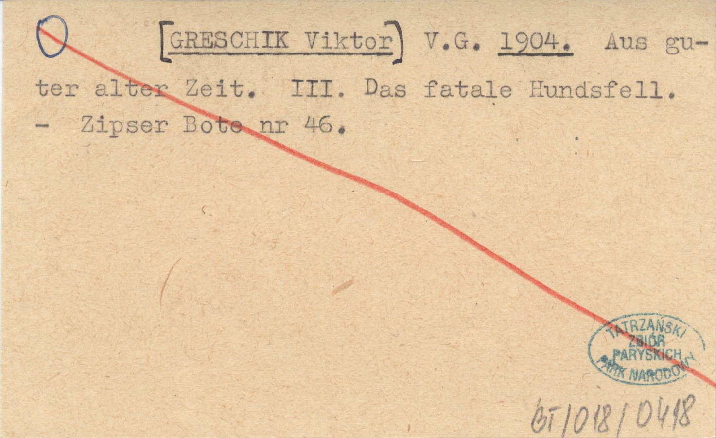 V.G. [GRESCHIK Viktor] 1904 Aus guter alter Zeit. III. Das fatale Hundsfell.