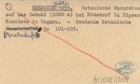 GRESCHIK Viktor 1891 Botanische Excursion auf das Gehohl (1060 m) bei Rissdorf im Zipser Komitate in Ungarn.