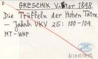 GRESCHIK Victor 1898 Die Trüffeln der Hohen Tátra.