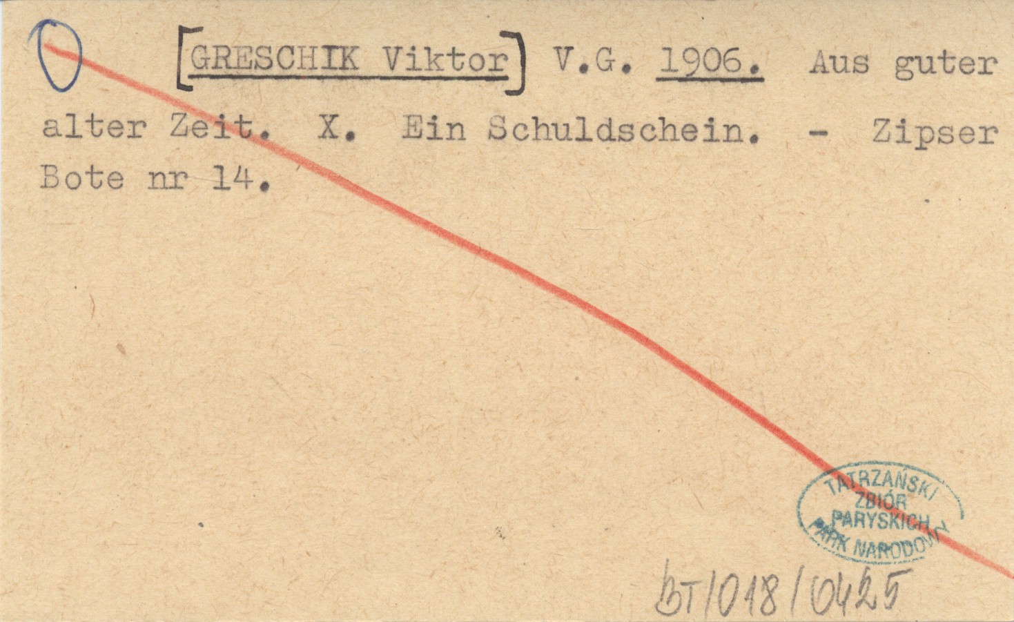 V.G. [GRESCHIK Viktor] 1906 Aus guter alter Zeit. X. Ein Schuldschein.