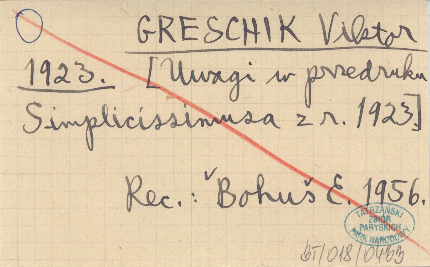 GRESCHIK Viktor 1923 [Uwagi w przedruku Simplicissimusa z r. 1923.].