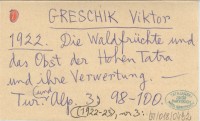 GRESCHIK Viktor 1922 Die Waldfrüchte und das Obst der Hohen Tatra und ihre Verwertung.