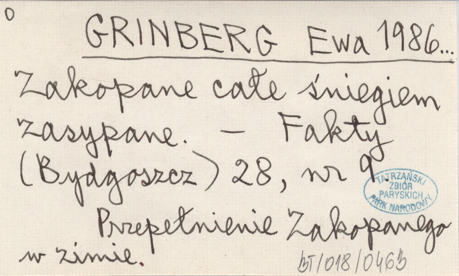 GRINBERG Ewa 1986... Zakopane całe śniegiem zasypane.