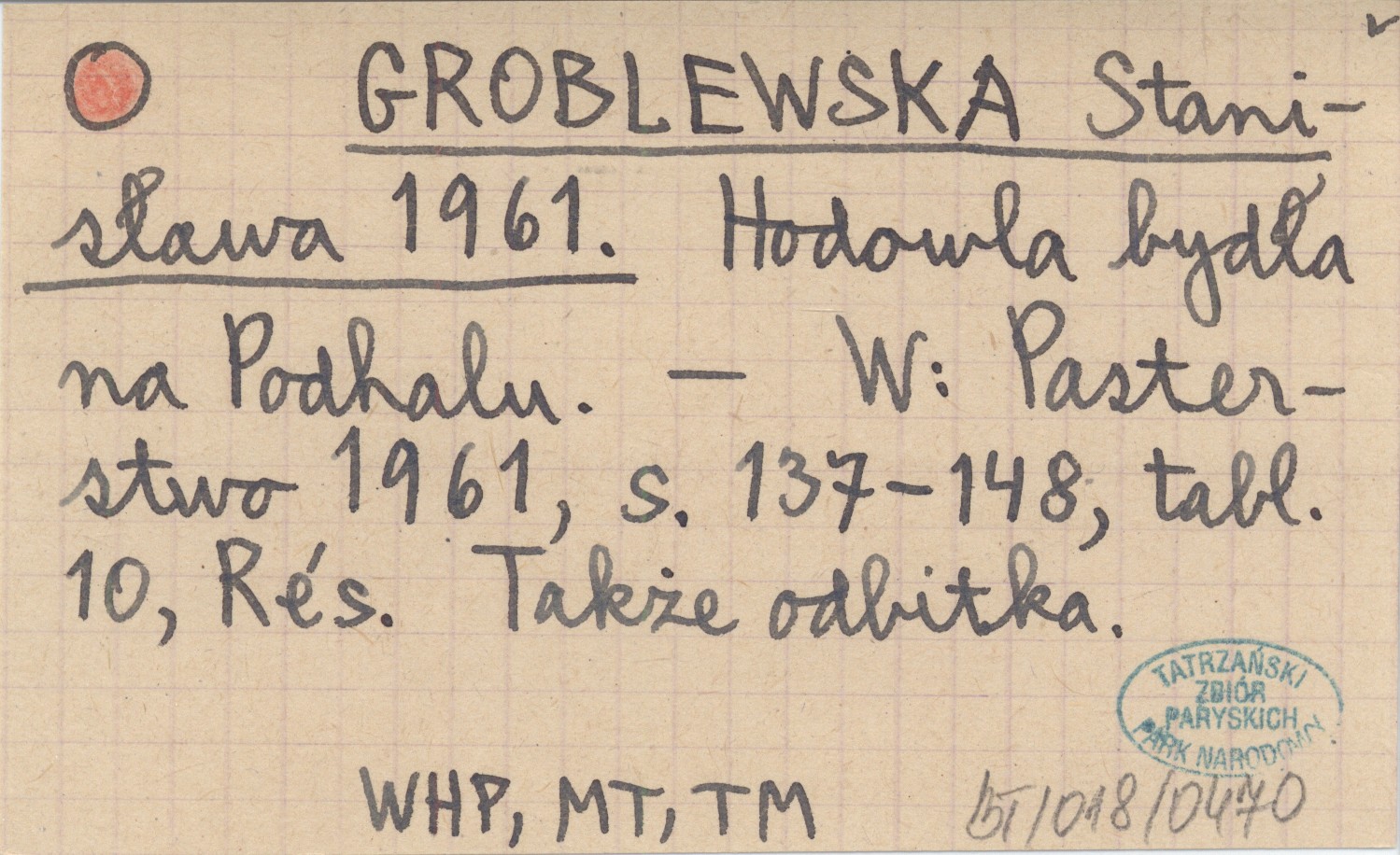 GROBLEWSKA Stanisława 1961 Hodowla bydła na Podhalu.