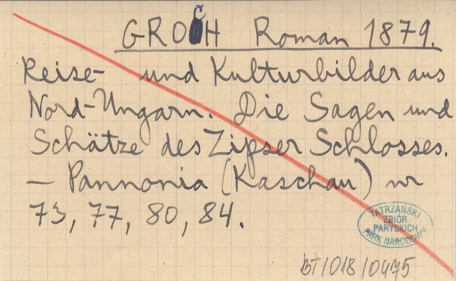 GROCH Roman 1879 Reise- und Kulturbilder aus Nord-Ungarn. Die Sagen und Schätze des Zipser Schlosses.
