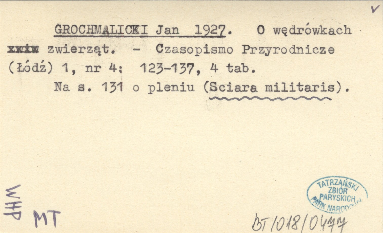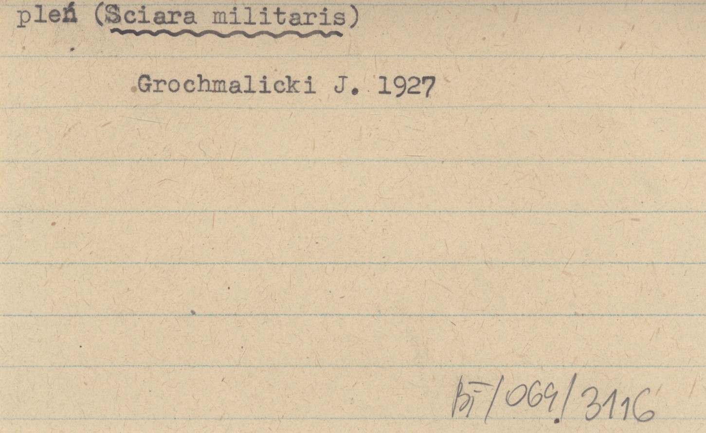 Czasopismo Przyrodnicze (Łódź) , 1, nr 4: 123-137, 4 k. tabl. Na s. 131 o pleniu (Sciara militaris).