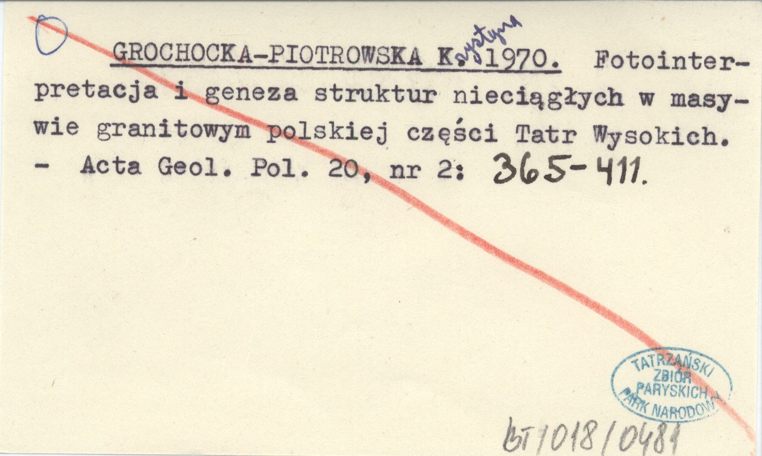 GROCHOCKA-PIOTROWSKA Krystyna 1970 Fotointerpretacja i geneza struktur nieciągłych w masywie granitowym polskiej części Tatr Wysokich.