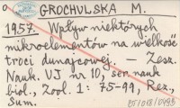 GROCHULSKA M. 1957 Wpływ niektórych mikroelementów na wielkość troci dunajcowej.