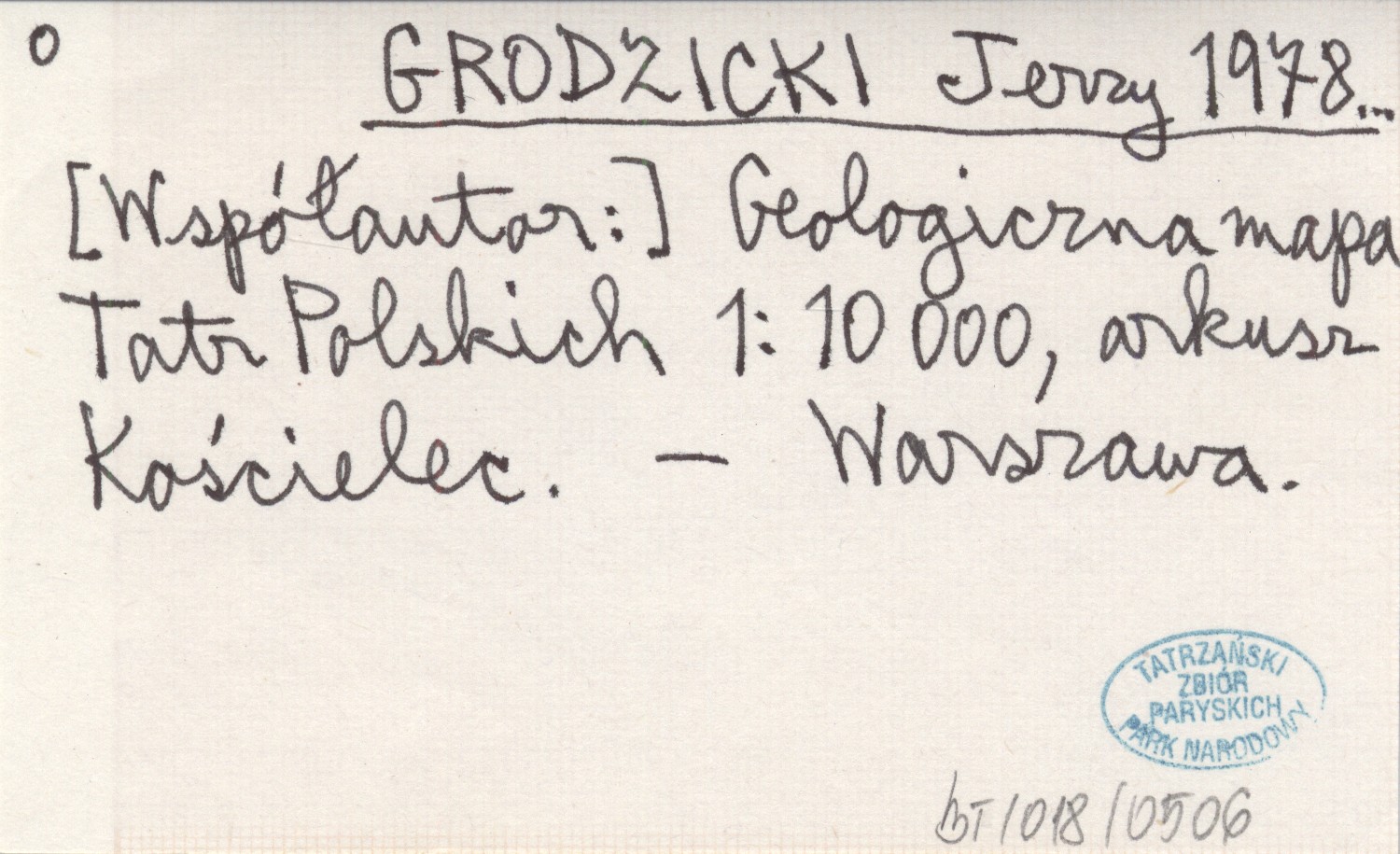 GRODZICKI Jerzy 1978... Geologiczna mapa Tatr Polskich 1:10 000, arkusz Kościelec.