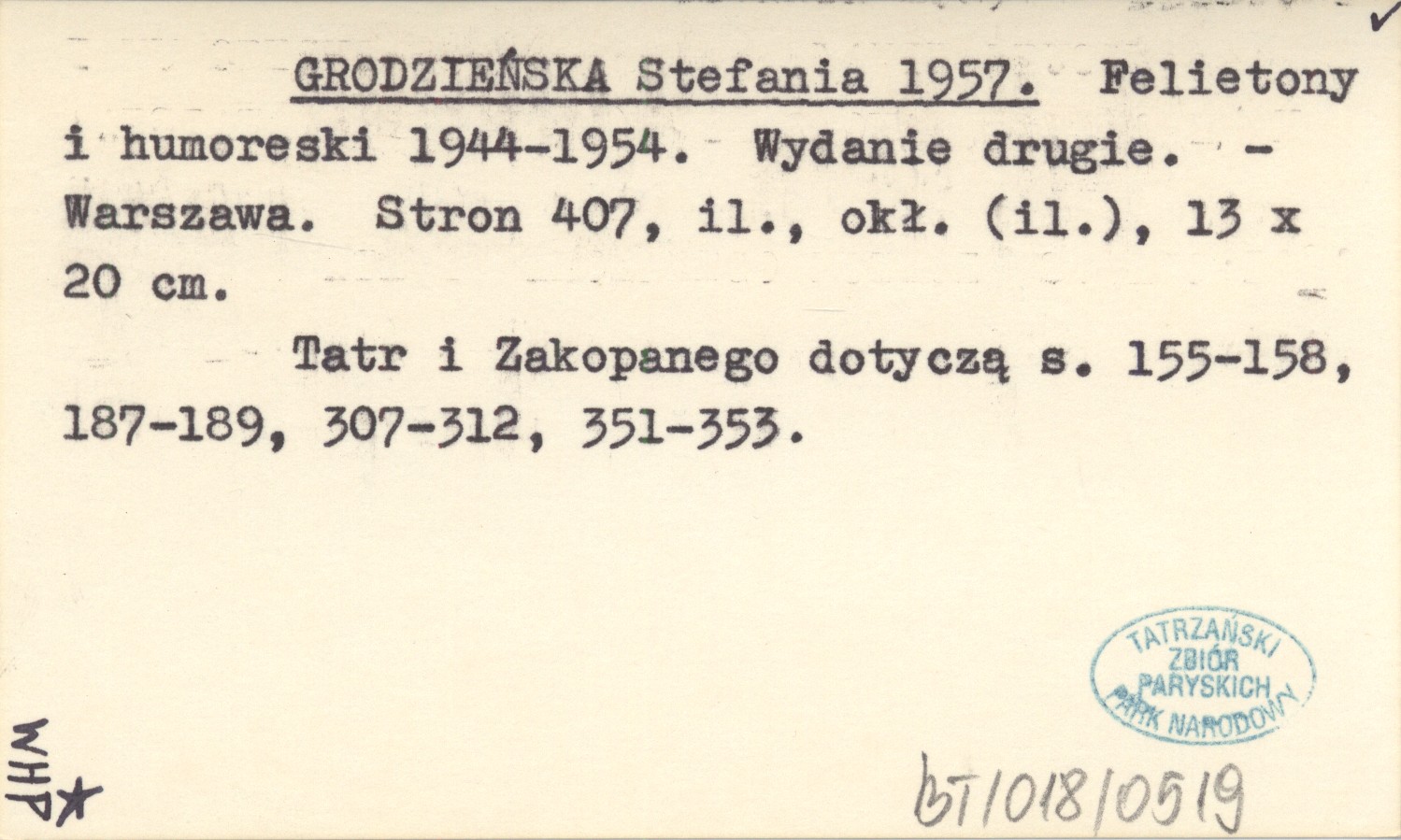 GRODZIEŃSKA Stefania 1957 Felietony i humoreski 1944-1954.