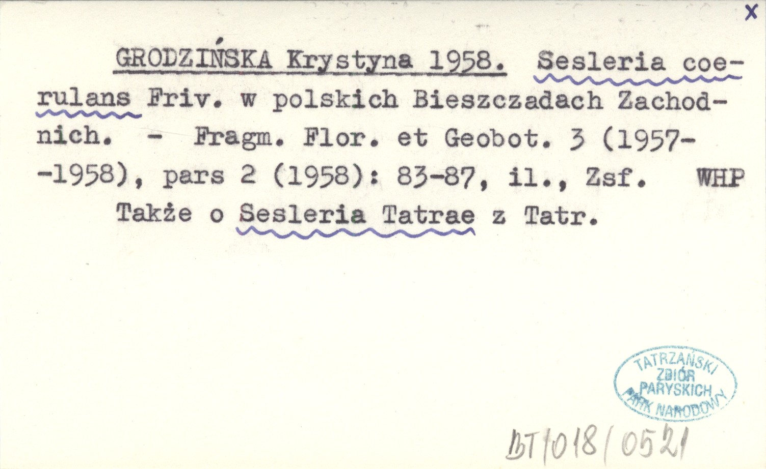 Fragmenta Floristica et Geobotanica, 3 (1957-1958), pars 2 (1958): 83-87, il., Zsf. Także o Sesleria Tatrae z Tatr.