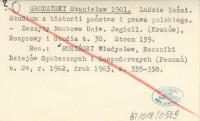 GRODZISKI Stanisław 1961 Ludzie luźni. Studium z historii państwa i prawa polskiego.