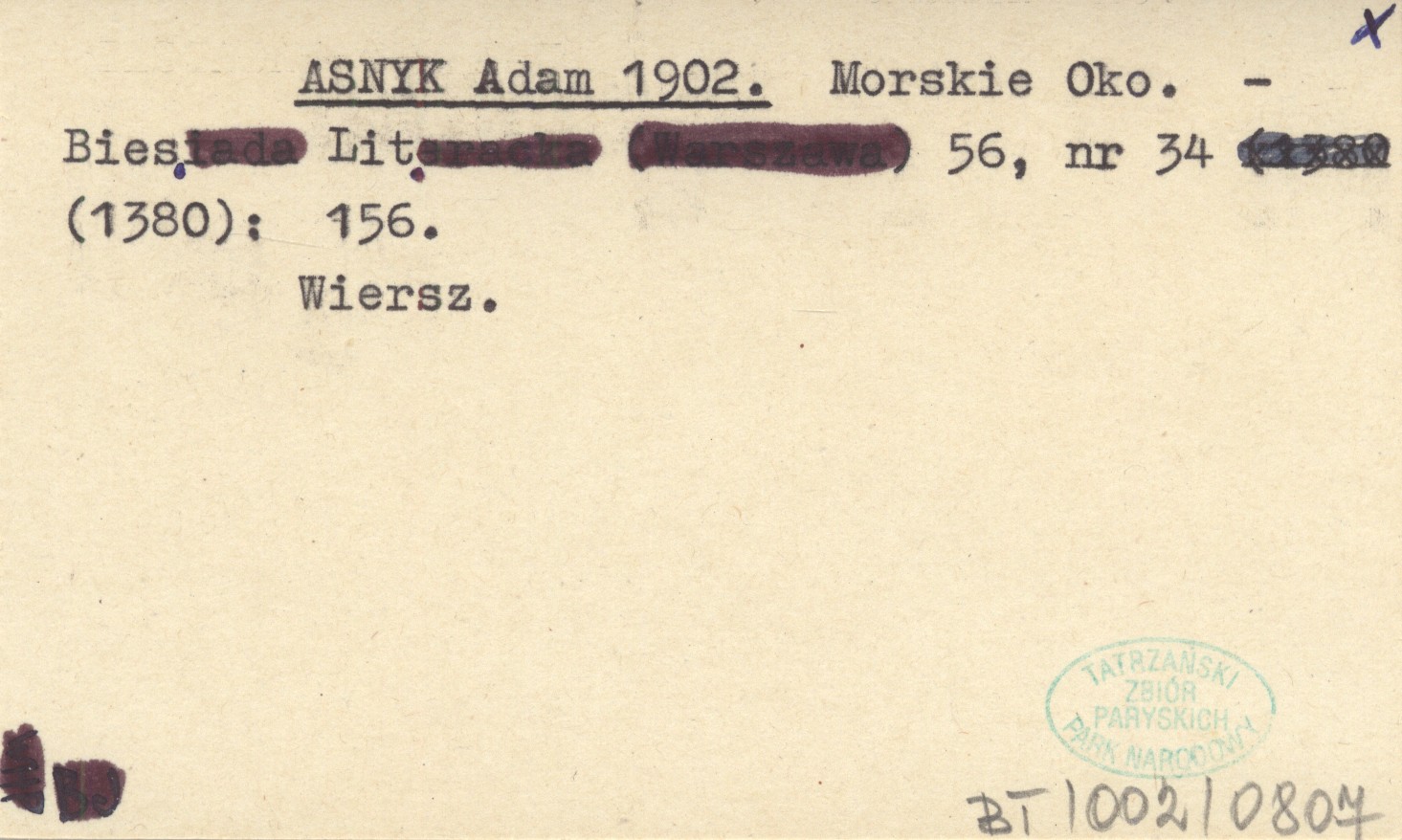 Biesiada Literacka (Warszawa) , 56, nr 34 (1380): 156. Wiersz.