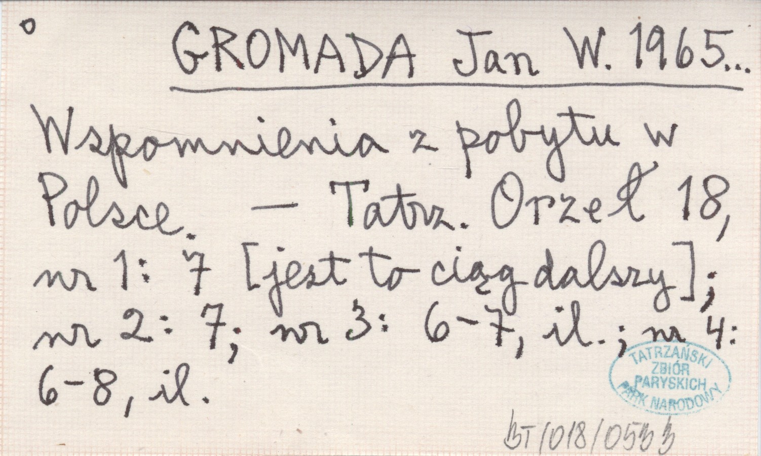 GROMADA Jan W. 1965... Wspomnienia z pobytu w Polsce.