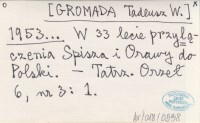 [GROMADA Tadeusz W.] 1953... Orawa in Polish history.