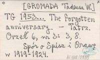 TG [GROMADA Tadeusz W.] 1953... The forgotten anniversary.