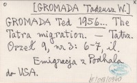 GROMADA Ted [GROMADA Tadeusz W.] 1956... The Tatra migration.