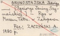 GROŃSKA Maria OCHOŃSKA, Maria. ; 1960... Zbiory Pawlikowskich.