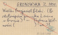 GRONOWSKA Z. 1950 Wielki Przyjaciel Polski. (Po odsłonięciu pomnika Lenina w Poroninie.).