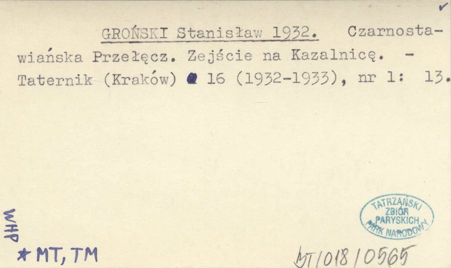 GROŃSKI Stanisław 1932 Czarnostawiańska Przełęcz. Zejście na Kazalnicę.