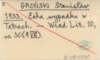 GROŃSKI Stanisław 1931 Hińczowa Turnia. I w. pn.-wsch. ścianą.