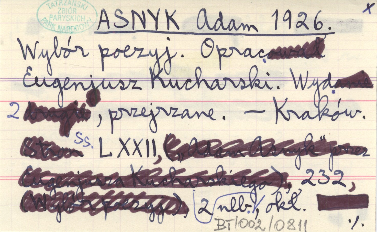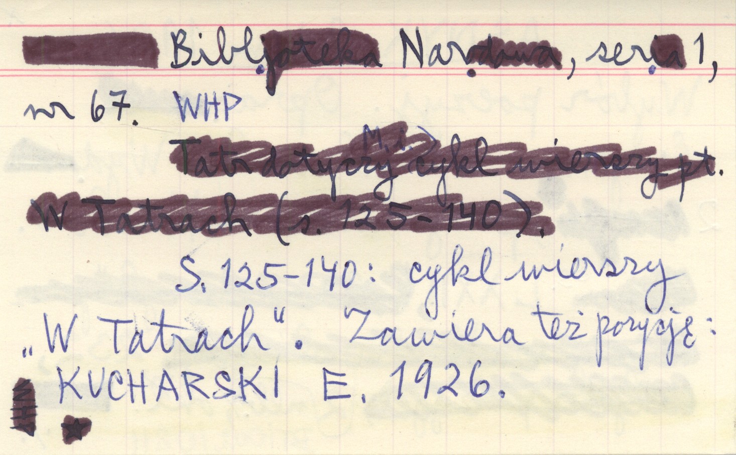 WYD: 2 przejrzane Kraków (Biblioteka Narodowa, ser. 1, nr 67) , LXXII, 232, [2] s., okł. S. 125-140: cykl wierszy "W Tatrach". Oprac. Eugeniusz Kucharski. Zawiera też pozycję: KUCHARSKI E. 1926.