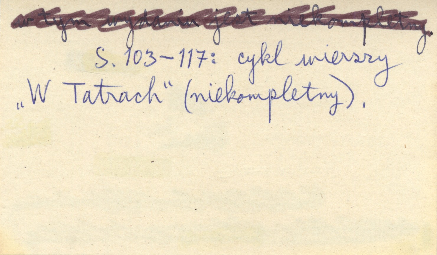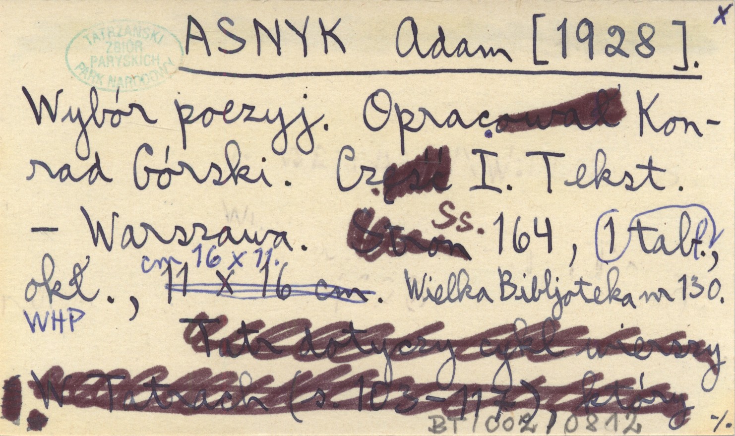 Warszawa Wielka Biblioteka, nr 130) , 164 s., 1 k. tabl., okł., 16x11 cm. S. 103-117: cykl wierszy "W Tatrach" (niekompletny). Oprac. Konrad Górski.