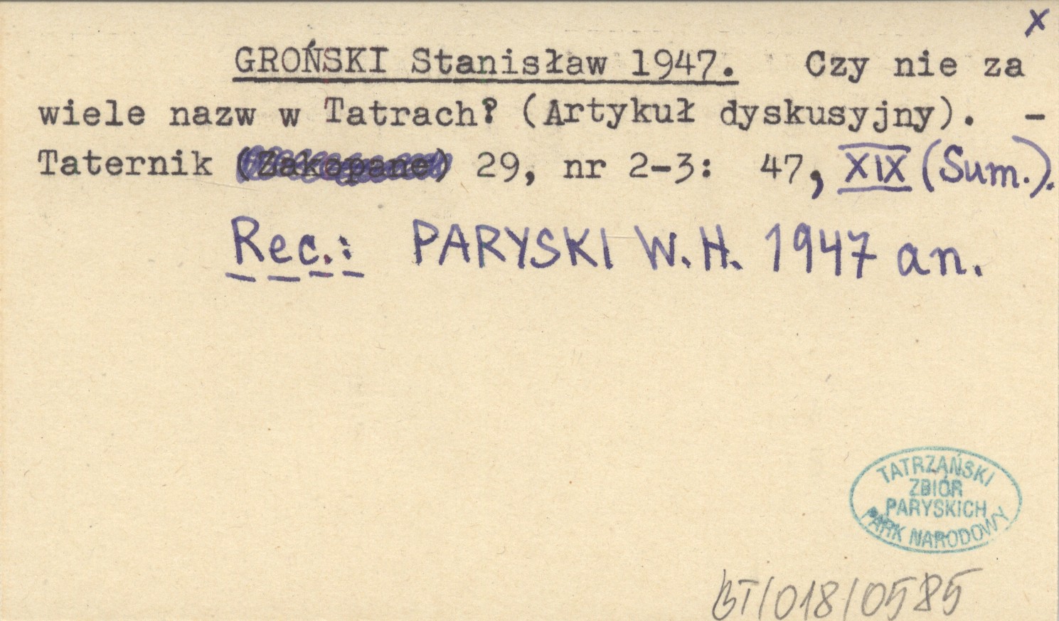 Taternik, 29, nr 2-3: 47, 19 (Sum.). REC: PARYSKI W. H. 1947 an