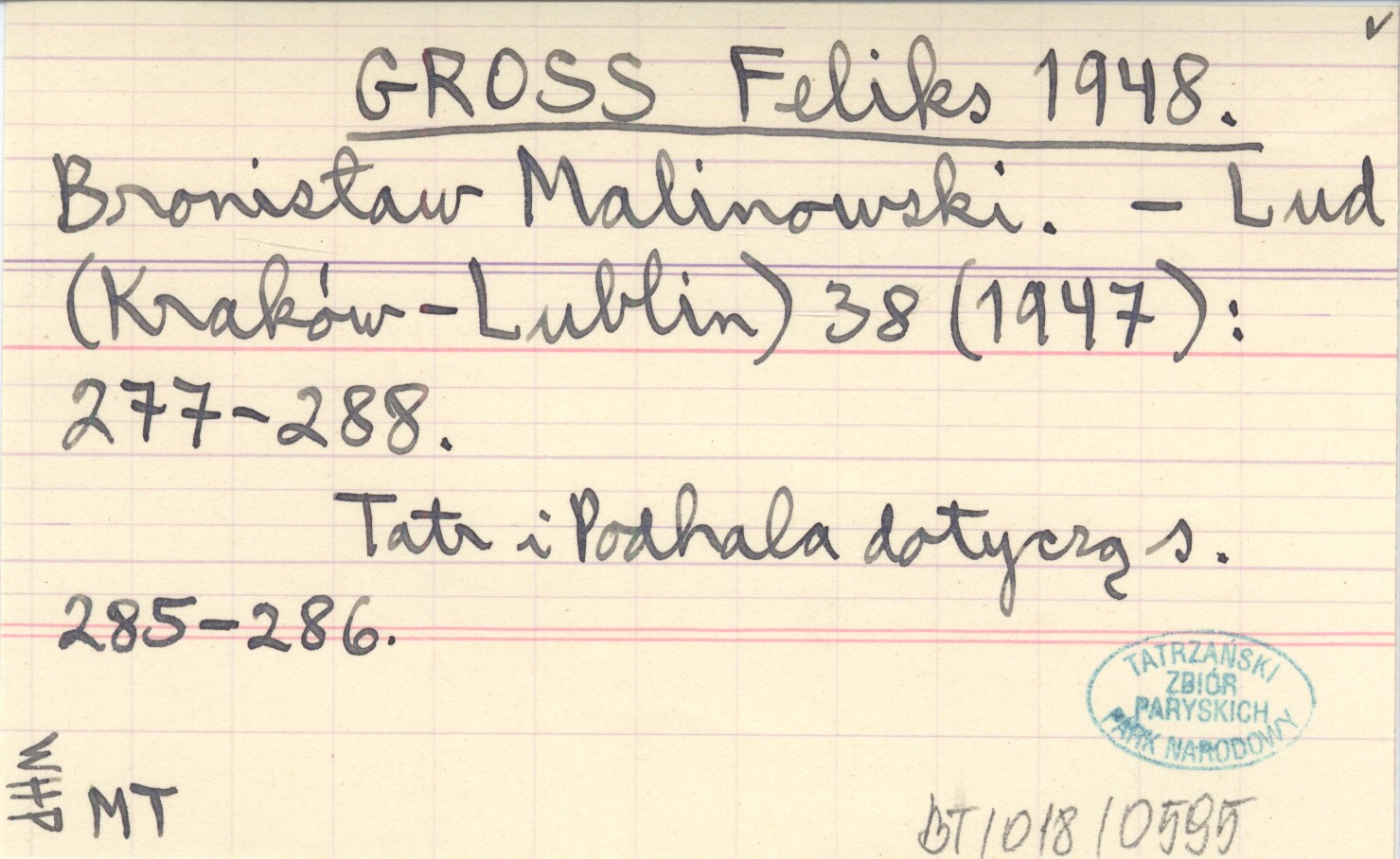 Lud (Kraków ; Lublin ;) , 38 (1947): 277-288. Tatr i Podhala dotyczą s. 285-286.
