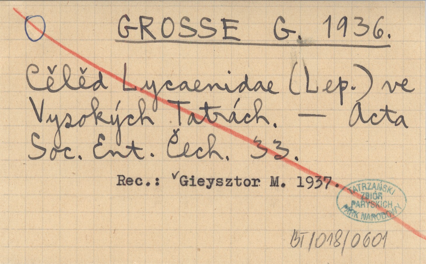 GROSSE G. 1936 Cělěd Lycaenidae (Lep.) ve Vysokých Tatrách.