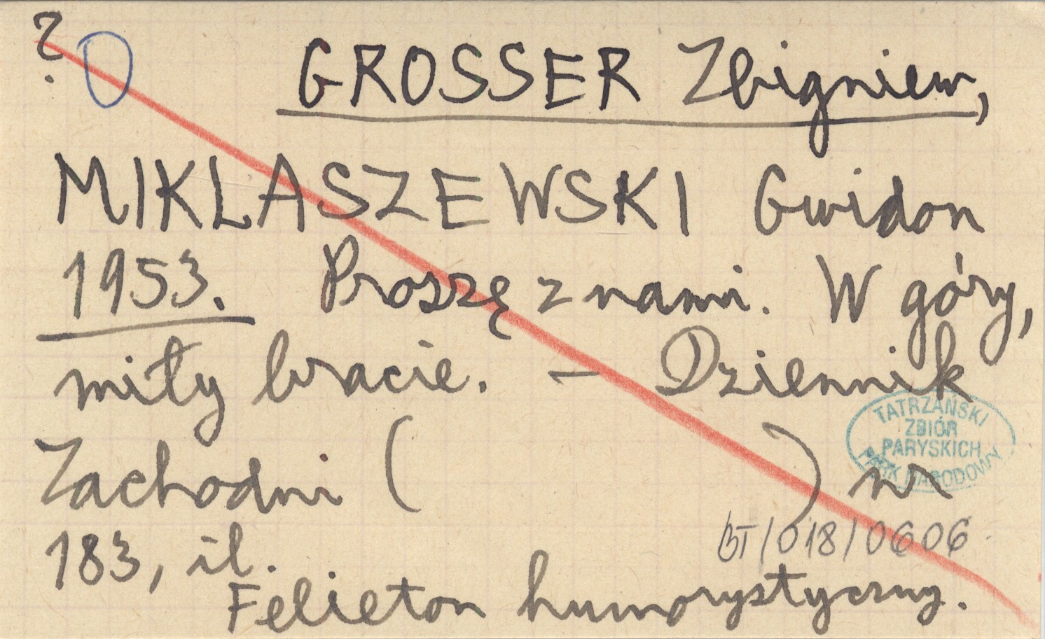 GROSSER Zbigniew MIKLASZEWSKI, Gwidon. ; 1953 Proszę z nami. W góry, miły bracie.
