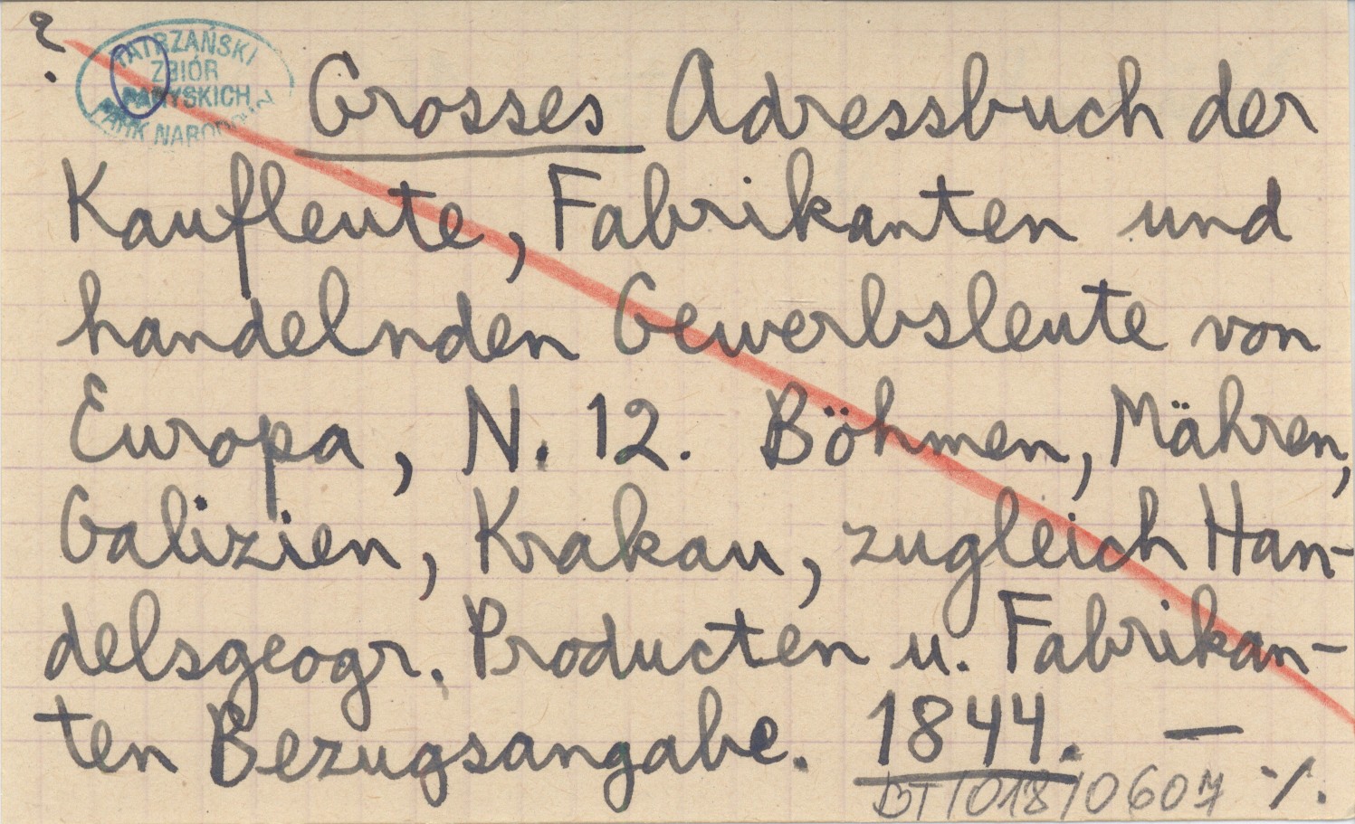 Grosses Adressbuch der Kaufleute, Fabrikanten und handelnden Gewerbsleute von Europa, N. 12. Böhmen, Mähren, Galizien, Krakau, zugleich Handelsgeogr. Producten u. Fabrikanten Bezugsangabe. 1844