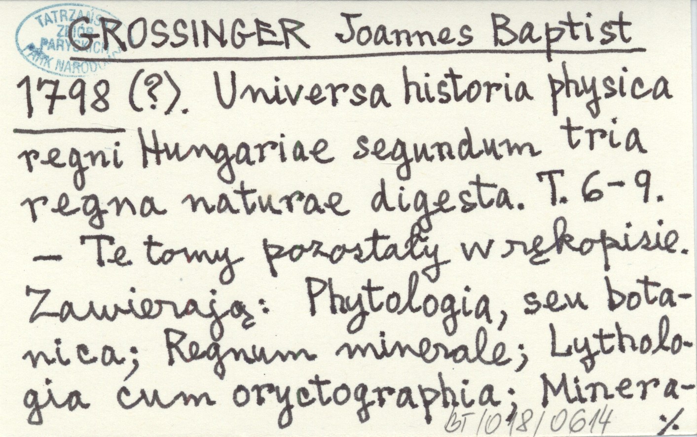 GROSSINGER Joannes Baptist 1798 (?) Universa historia physica regni Hungariae segundum tria regna naturae digesta. T. 6-9.