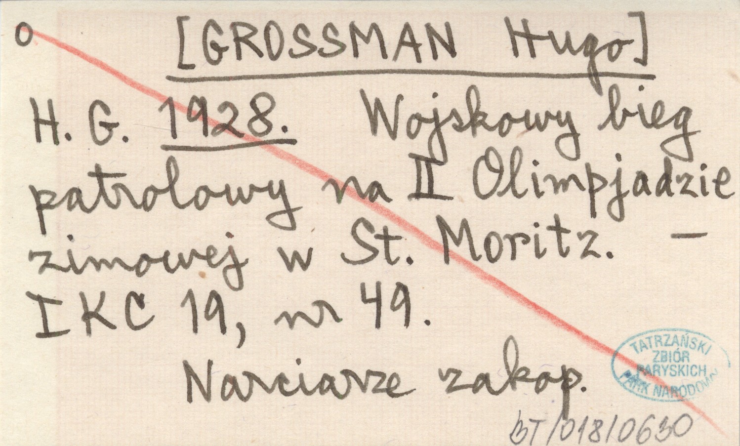H. G. [GROSSMAN Hugo] 1928 Wojskowy bieg patrolowy na II Olimpjadzie zimowej w St. Moritz.