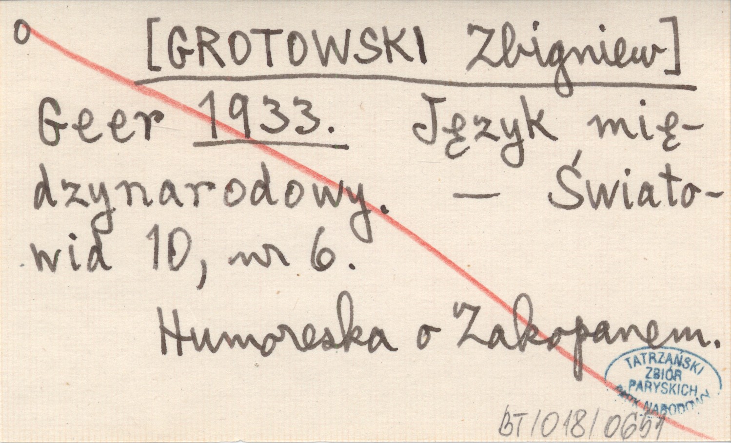 Geer [GROTOWSKI Zbigniew] 1933 Język międzynarodowy.