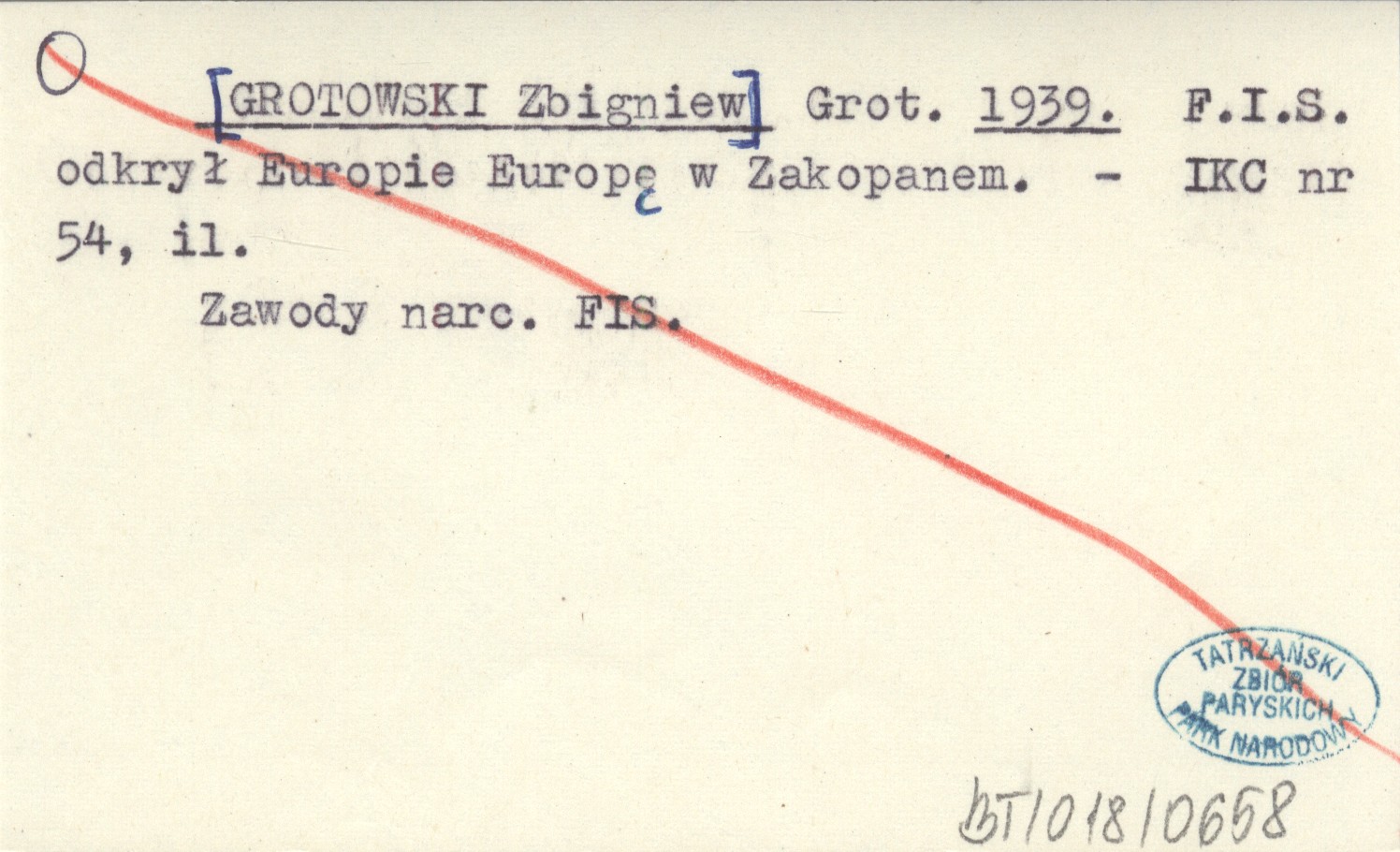 Grot. [GROTOWSKI Zbigniew] 1939 F.I.S. odkrył Europie Europę w Zakopanem.