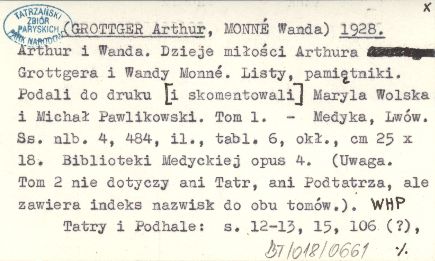 (GROTTGER Arthur) MONNÉ, Wanda. ; 1928 Arthur i Wanda. Dzieje miłości Arthura Grottgera i Wandy Monné. Listy, pamiętniki. Podali do druku [i skomentowali] Maryla Wolska i Michał Pawlikowski. Tom 1.