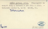 GRÓSZ Alfred 1912 Przyczynki do nowych dróg w Tatrach z lat 1911 i 1912.
