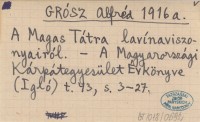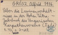 GRÓSZ Alfréd 1916 a A Magas Tátra lavínaviszonyairól.