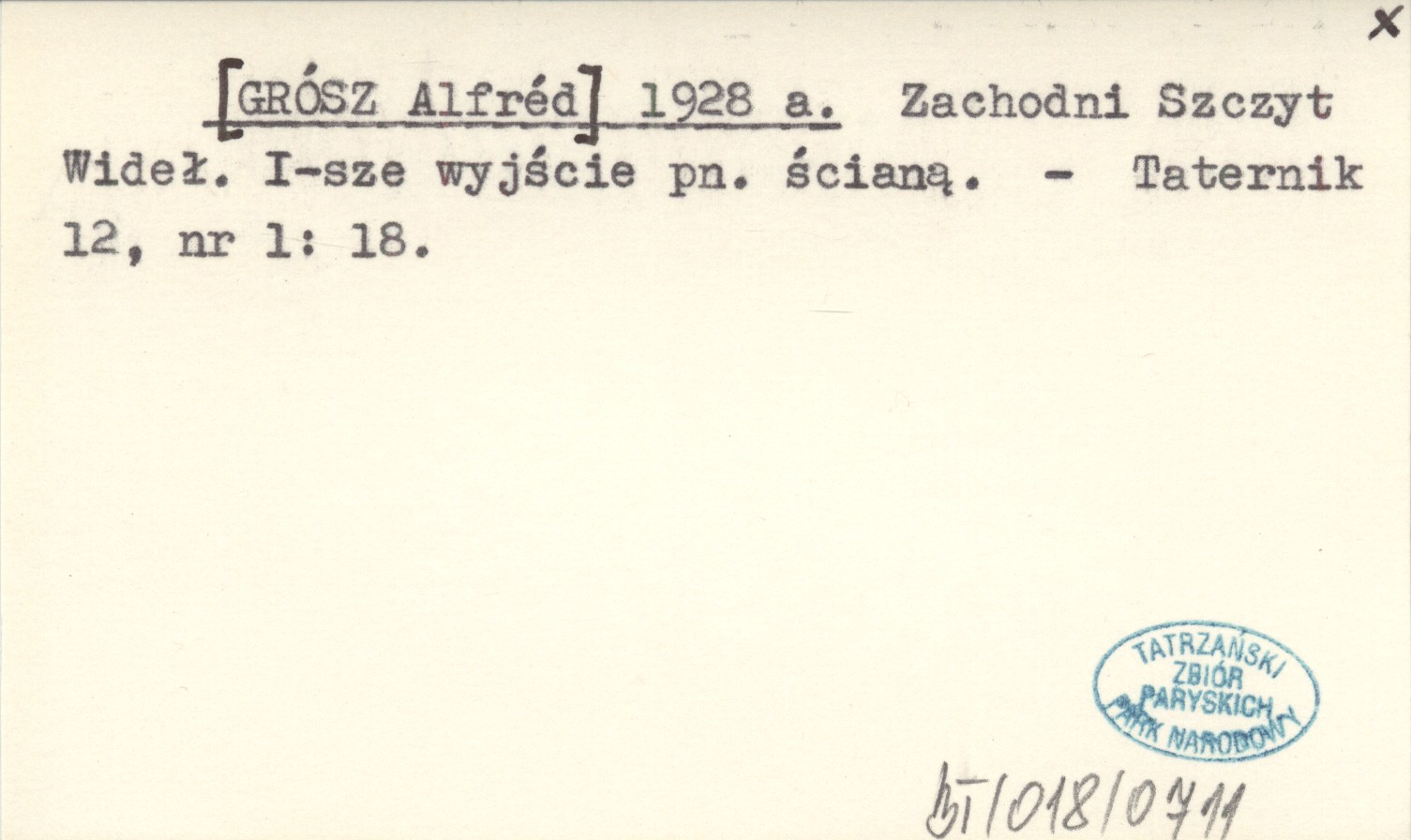 [GRÓSZ Alfréd] 1928 a Zachodni Szczyt Wideł. I-sze wyjście pn. ścianą.