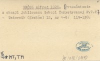 GRÓSZ Alfred 1928 [Przemówienie z okazji jubileuszu Sekcji Turystycznej P.T.T.].