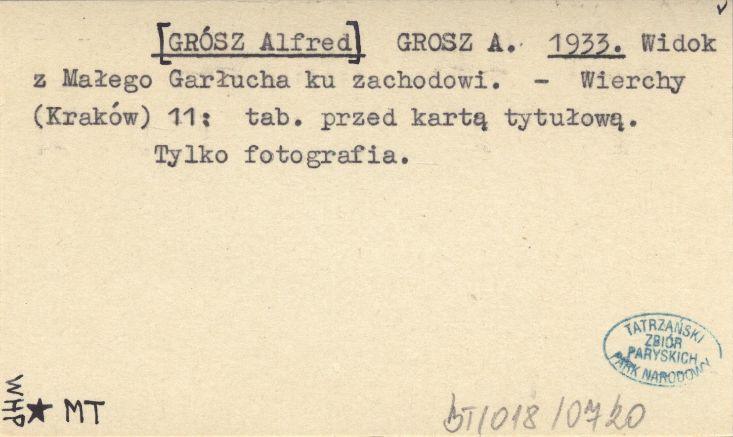 GROSZ A. [GRÓSZ Alfred] 1933 Widok z Małego Garłucha ku zachodowi.